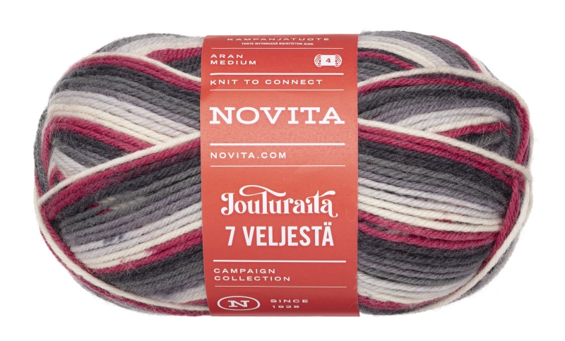 Lõnga koostis on sama mis ühevärvilisel Novita 7 Veljestä lõngal: 80% sooja villа ja 20% polüamiidi, mis lisab kudumile vastupidavust.