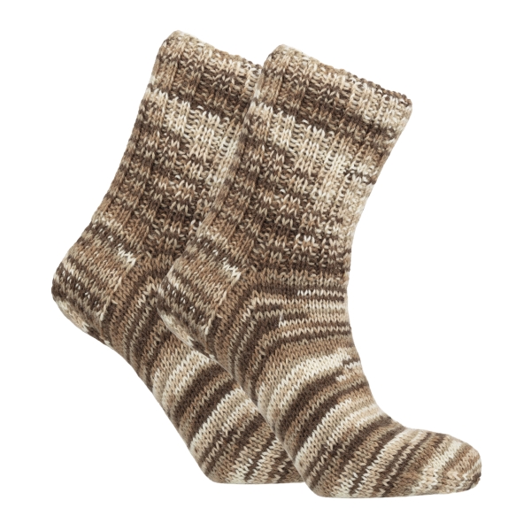 Lõnga koostis on 80% villat ja 20% polüamiidi – vill annab soojuse, polüamiid lisab tugevust ja kulumiskindlust, eriti just sokkides.